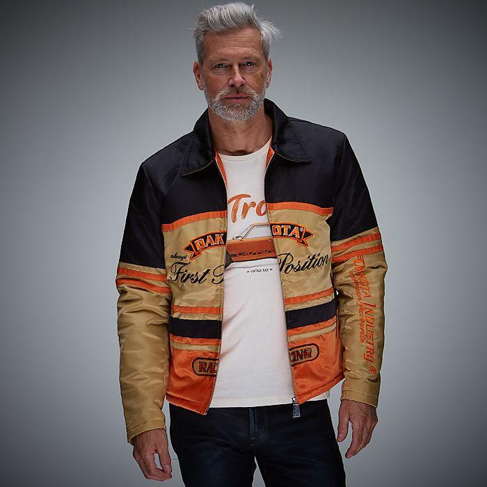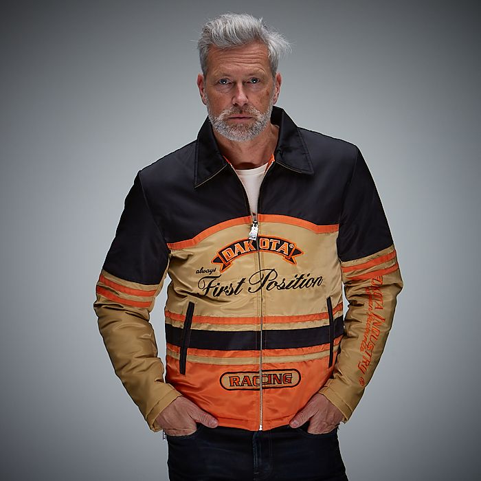 Back on track! Die Wiederauflage der Kult-Racingjacke unserer Ur-Marke DAKOTA lebt noch einmal neu auf in den original 70er Jahre Racing Farben. Das Original besteht aus extra stabilen Nylonstoff und ist mit einer ganze Menge Stickereien auf der Brust und dem Arm sowie oben auf den Rücken verziert. Die First Position Classic war der Topseller einer ganzen Generation und hat ein Revival mehr als verdient.