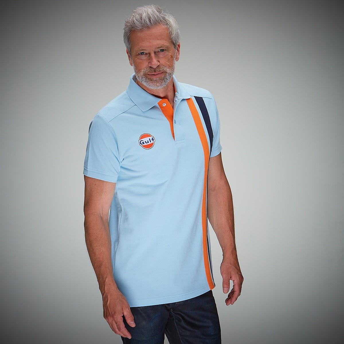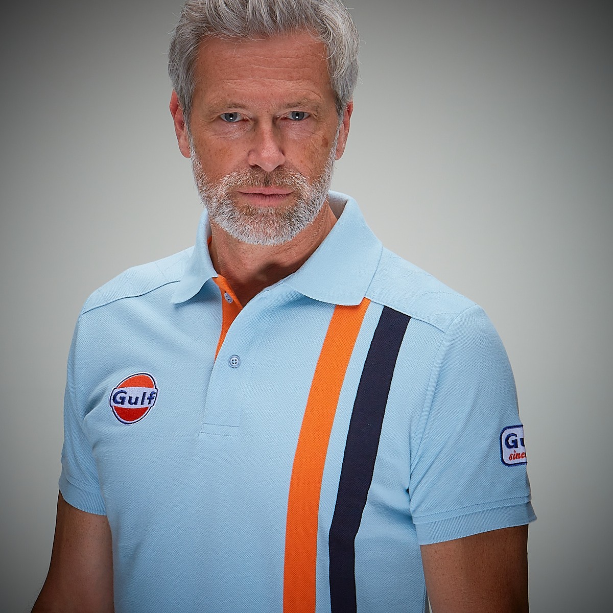 Ein Klassiker back on track bei Grandprix Originals. Cleanes Layout mit den Racingstreifen und dem Gulf Logo direkt eingestickt. Ein Special bei diesem Poloshirt sind die abgesteppten Schulterpartien. Normale Passform und lieferbar in 3 Farben.