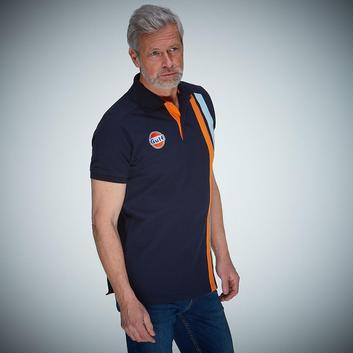 Ein Klassiker back on track bei Grandprix Originals. Cleanes Layout mit den Racingstreifen und dem Gulf Logo direkt eingestickt. Ein Special bei diesem Poloshirt sind die abgesteppten Schulterpartien. Normale Passform und lieferbar in 3 Farben.